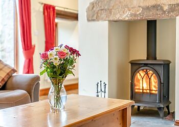- Wood-burning stove in sitting room